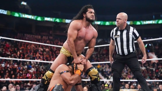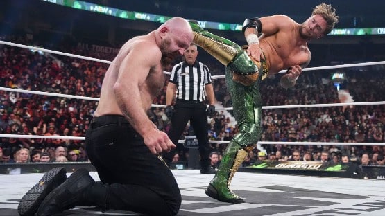 Omega can’t work night-in, night-out like he did in his New Japan heyday in the mid to late 2010s, but for one night, he had lightning in a bottle for this one with Maxwell Jacob Friedman, who is the world champ because he can talk fans into the building, and because he knows, when the bell rings, how to wrestle like a world champ.