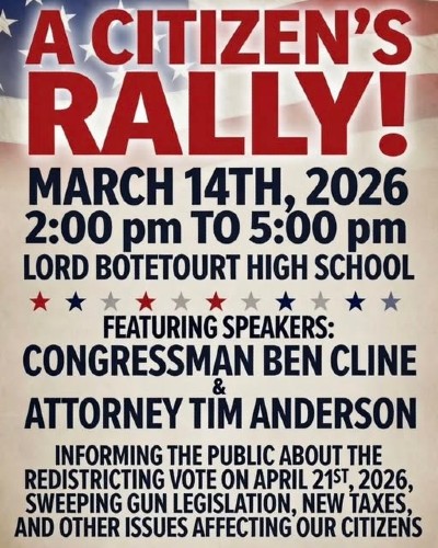 I’m guessing Cline will want to use the event to whip up support for his push to save his job by blocking the congressional redistricting effort being led by Virginia Democrats.