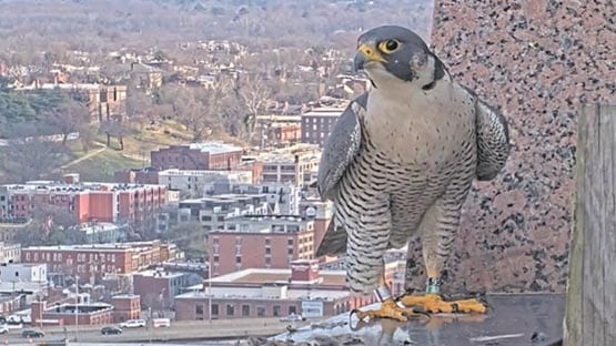 The peregrine falcons, one of more than 30 pairs in Virginia, will be captured on a livestream through egg laying, incubation, hatching and until the chicks leave the nest. The peregrine falcons are considered state-threatened.