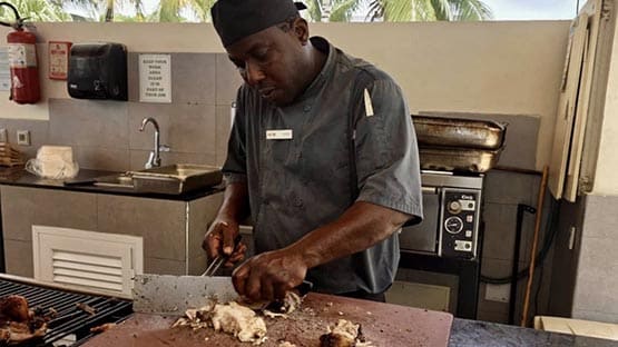 We had fresh mango and sushi from the buffet and coconut water from a fresh coconut. One of the bartenders, Mike, made sure we didn’t go thirsty in our beach loungers each day. In Jamaica, it’s perfectly acceptable to drink a pina colada at 9 in the morning. We enjoyed the postcard-worthy views and warm temperatures every day and were grateful for the staff who made the entire trip unforgettable.