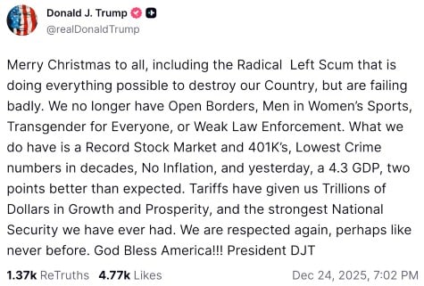 This guy can’t be a decent human being even on Christmas, but that’s who Donald Trump is.