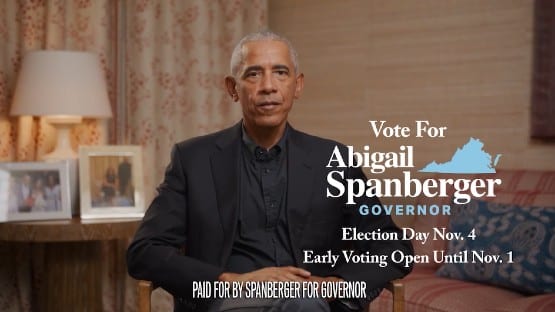 A Democratic former president endorsing a Democrat running for governor is not normally newsworthy. But I’m going to write about Barack Obama dropping two new TV spots for Abigail Spanberger because of what I see going on with them doing that.
