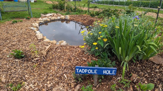 Montessori students have been working with the Staunton based educational nonprofit farm Project GROWS to develop an outdoor learning pond.