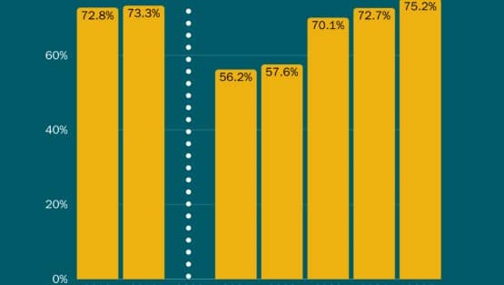 Despite serving a higher percentage of economically-disadvantaged students than most Virginia school systems, Staunton students increased to their highest passing rate as of 2025 and also surpassed the state average in every tested subject (reading, math and science). In 2019, before the COVID-19 pandemic and the start of learning loss for all Virginia students, Staunton students earned a 73.3 percent pass rate. In 2021, the pass rate had fallen to 56.2 percent, then slightly up to 57.6 percent in 2022. Scores made the leap to above 70 percent in 2023 and steadily increased to 75.2 percent as of 2025.