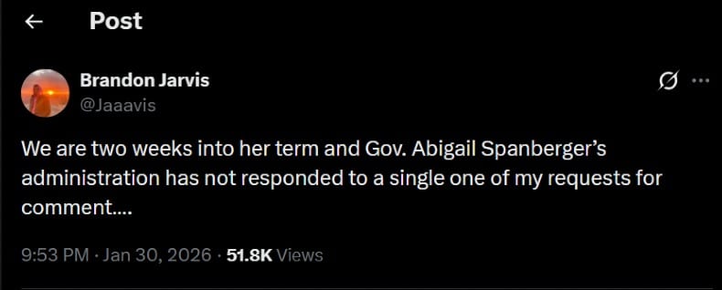 I will note here that Jarvis tweeted out a response from the Spanberger administration today on a story on congressional redistricting, so, seems that the technical issue that he’d apparently been experiencing resolved itself as well.