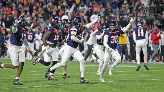 Next week, the ‘Hoos face Duke (7-5, 6-2 ACC), which finished in a five-way tie for second place with #12 Miami (10-2, 6-2 ACC), #21 SMU (8-4, 6-2 ACC), #22 Pitt (8-4, 6-2 ACC) and #23 Georgia Tech (9-3, 6-2 ACC), but won the convoluted tiebreaker to get the second spot in Charlotte.