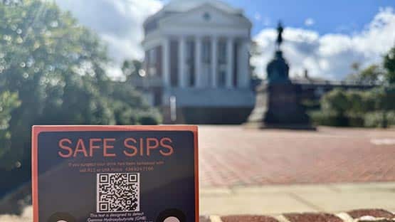 “Our top priority is always the safety and well-being of every member of the UVA community,” said Timothy J. Longo Sr., chief of police and associate vice president for safety and security. “The Safe Sips coaster is one more tool students can use to help protect themselves and their friends, while underscoring the importance of looking out for one another.