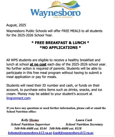 Well done to the Waynesboro Public Schools, which will be keeping all kids fed regardless of parents’ income and despite Cline’s disapproval.